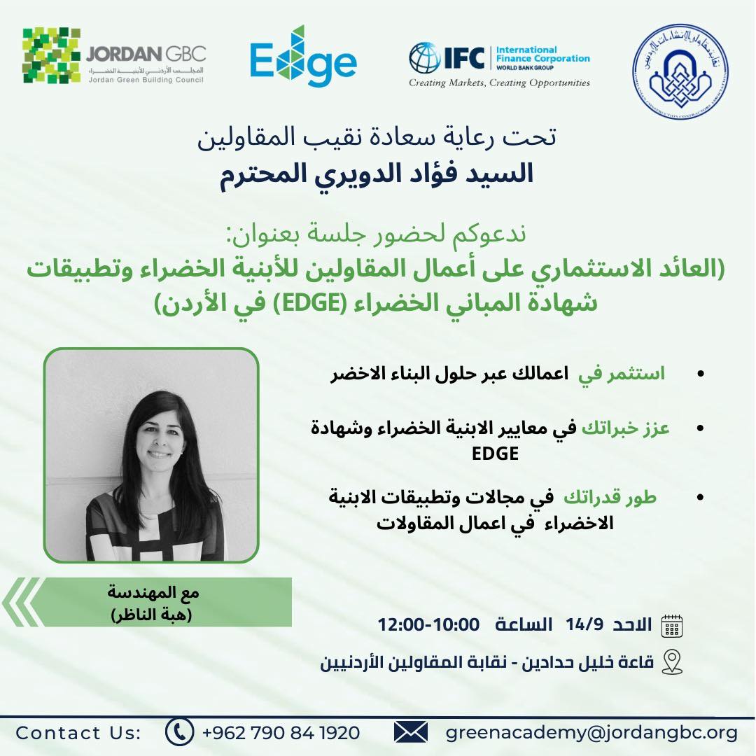 تتشرف نقابة المقاولين الأردنيين بالتعاون مع المجلس الأردني للأبنية الخضراء بدعوتكم لحضور الجلسة التوعوية بعنوان: