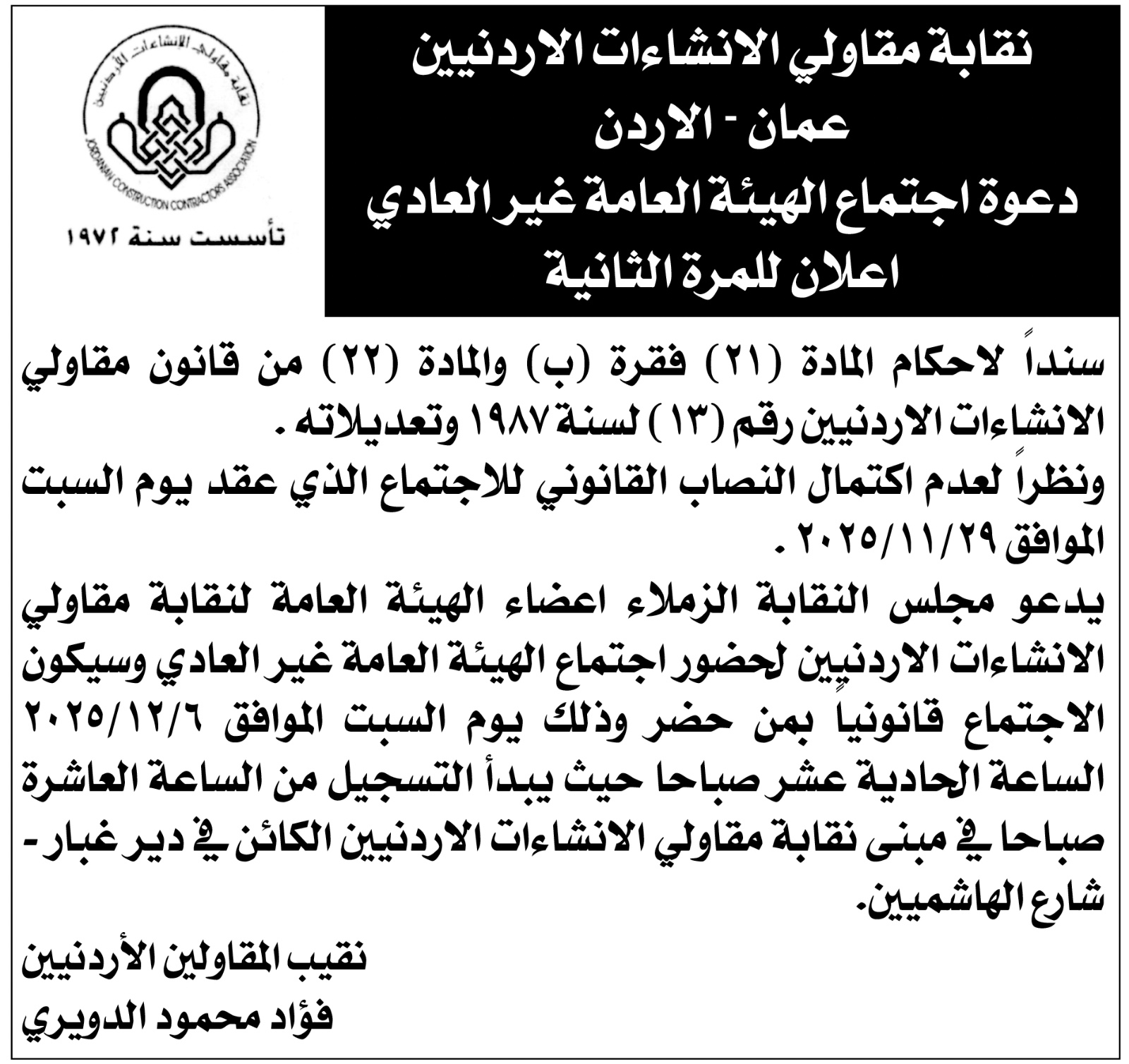 دعوة اجتماع هيئة عامة غير عادي - للمرة الثانية