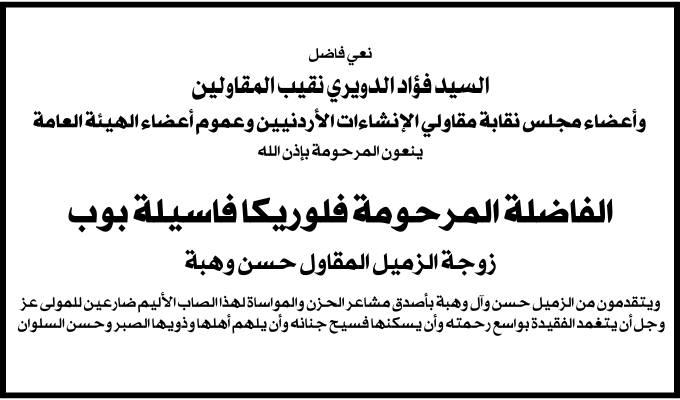 وفاة المرحومة بإذن الله فلوريكا فاسيلة بوب.